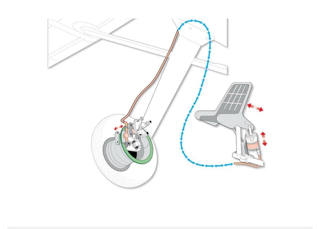 Let me brake (break!) it down into phases of flight. During the pre-flight you check the brakes by looking at the discs, the brake pads, the wheels, the brake lines. It is a hydraulic system. Hydro is a prefix derived from Greek meaning usually water or fluid. A hydraulic system is thus a system that uses fluid to transmit force over a distance. Since fluids are not compressible, unlike gas, the force one exerts on the fluid is the same at the origin of the force, the brake cylinder attached to the brake pedal as it is at the end of the brake lines near the brake pads. Using lever systems the pressure per pound can then be increased on the actual brake pads as those clamp down on the brake discs. This force results in friction and the disc ‘grinds’ to a halt. Stomping on the brakes during preflight thus slams the pedal into the fluid filled small, fragile and expensive cylinder and pressures the fluid, which can’t compress, with that same stomping force into the brake clamping mechanism at the wheel. Stomping thus only serves to test the screws, little axels and cylinder strength unduly, where a gentle ‘squeeze’ would have sufficed just to ensure there is pressure building in the cylinder so as to make sure the fluid column is present between the cylinder and the brake pads. Gentle!